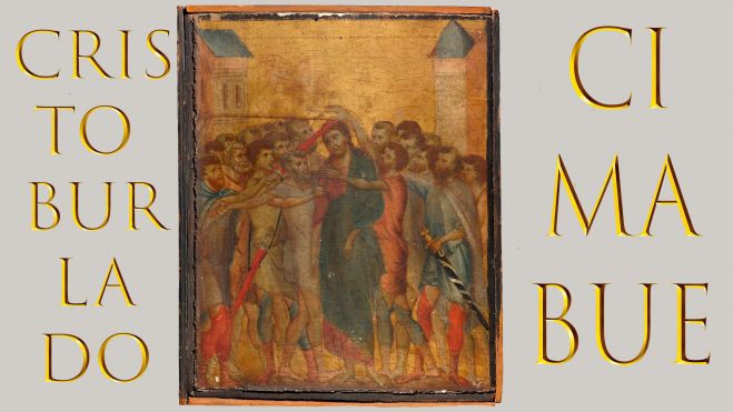 El segundo cuadro clave de la exposición es el Cristo burlado, una obra redescubierta en Francia en 2019 en una casa particular. Esta pintura, que relata la humillación de Cristo antes de su crucifixión, fue adquirida por el Louvre en 2023 y clasificada como Tesoro Nacional. Forma parte de un díptico, del cual el museo francés ha reunido por primera vez los tres únicos paneles conocidos hasta ahora. La obra destaca por su audaz humanización de los personajes, que son vestidos con ropas contemporáneas al tiempo de Cimabue, un guiño a las preocupaciones de los franciscanos, que promovían una espiritualidad más cercana y personal.