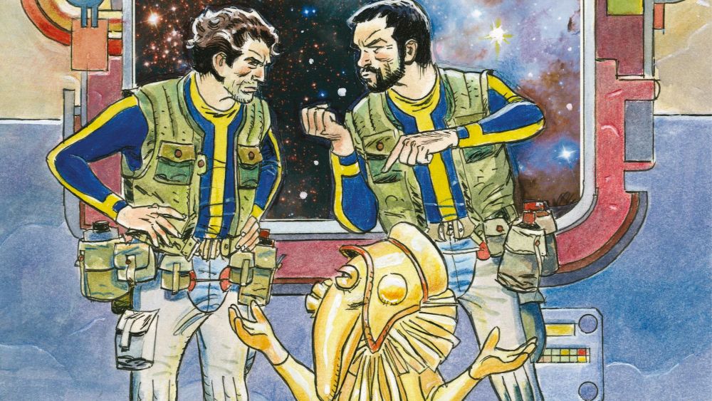 No es de extrañar que les tomara aprecio. Clarke y Kubrick son una versión galáctica y grasienta del típico dúo de humor que tan bien ha demostrado funcionar en la historieta española, a lo Mortadelo y Filemón o Pepe Gotera y Otilio. Kubrick es vitalista e impulsivo, pronto a indignarse y a encenderse ante las injusticias; Clarke es reflexivo, amoral y sibilino, con los pies bien anclados en la tierra. Ambos no paran de discutir, ya sea entre sí o con todos los desaprensivos que encuentran en su camino (aprended, polluelos de guionista: diálogos inteligentes, ágiles y vehementes sin caer en el recurso fácil de las palabrotas), y ambos son igual de cobardes, codiciosos, entrañablemente humanos en sus contradicciones y en sus cambios de humor. Antiheroicos en el comportamiento y en las trazas, siempre mal afeitados, despeinados y llenos de mugre, se buscan la vida en un futuro cargado de tópicos, caricatura de nuestra sociedad. El de esta serie prefigura ese futuro seborreico y cañí de Acción mutante donde conviven robots y trileros de feria entre astronaves destartaladas, injusticias sociales y corporaciones sin escrúpulos. Los “espacialistas” Clarke y Kubrick se encargan de hacer los trabajos sucios de una mezquina multinacional que se dedica a sacar provecho de la explotación colonialista del cosmos, y que muy adecuadamente se llama la C.E.E., siglas de Compañía de Exploración Extraterrestre. (Nota para millennials: recordemos que esto está escrito a principios de los ochenta, cuando esas eran las siglas del leviatán transnacional llamado a convertirse en la Unión Europea. ¡Anda que no se le veían ya los dientes al lobo!)