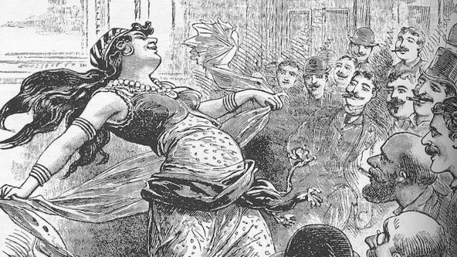 Great Columbian Exposition celebrada en Chicago en 1893 dejó a miles de visitantes encandilados con su reproducción de una calle de El Cairo: músicos, acróbatas, encantadores de serpientes, paseos en camello a quince centavos, un gabinete con momias de gutapercha… Pero el trampantojo no podía estar completo sin una muestra de la afamada