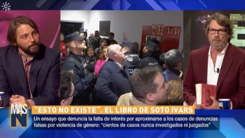Una cosa son las palabras bonitas y las buenas intenciones y otra bien distinta los hechos puros y duros. El Gobierno andaluz de Juan Manuel Moreno Bonilla muestra en la teoría casi nulas fisuras en su lucha contra la violencia machista, pero los hechos demuestran lo contrario en episodios reiterados de blanqueamiento del negacionismo de las violencias contra las mujeres. El último caso se ha producido este jueves durante la presentación, en la Biblioteca Pública Infanta Elena de Sevilla (dependiente de la Junta de Andalucía), de un libro del tertuliano y escritor Juan Soto Ivars, que propaga, sin rubor y con encono, el discurso negacionista de las denuncias falsas, asegurando que son muchas más que el testimonial 0,01% que certifican los datos oficiales de la Fiscalía. Para culminar esta alfombra roja de la Administración andaluza al columnista, la televisión pública de todos los andaluces, Canal Sur, ha entrevistado a Soto Ivars este mismo jueves 4 de diciembre en horario de prime time, durante el programa Más noche de análisis, dirigido por Teodoro León Gross con un ridículo índice de audiencia del 4%.