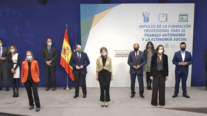 La ministra de Trabajo, Yolanda Díaz, ha presentado el Plan de Impulso de la Formación Profesional del Trabajo Autónomo y la Economía Social, al que el Ministerio de Trabajo y Economía Social destinará 3,4 millones de euros.