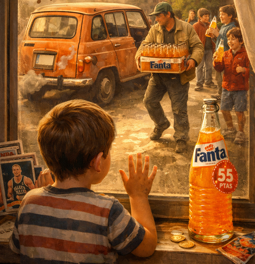Yo quería una Fanta de 55 pesetas. No exagero: quería esa Fanta más que a los Reyes Magos, más que a los domingos con churros, más que a los cromos de jugadores de la NBA, que me hacían soñar con mundos donde todo era posible y donde las Fantas se compraban sin mirar el monedero. La botella de vidrio pesaba como si llevara dentro magia líquida y un poquito de inocencia infantil.