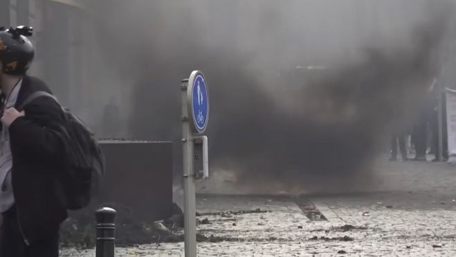La fuerte presencia policial y de antidisturbios (CRS) alrededor del Parlamento Europeo no hizo sino reforzar la imagen de un choque entre dos legitimidades: la institucional y la productiva.