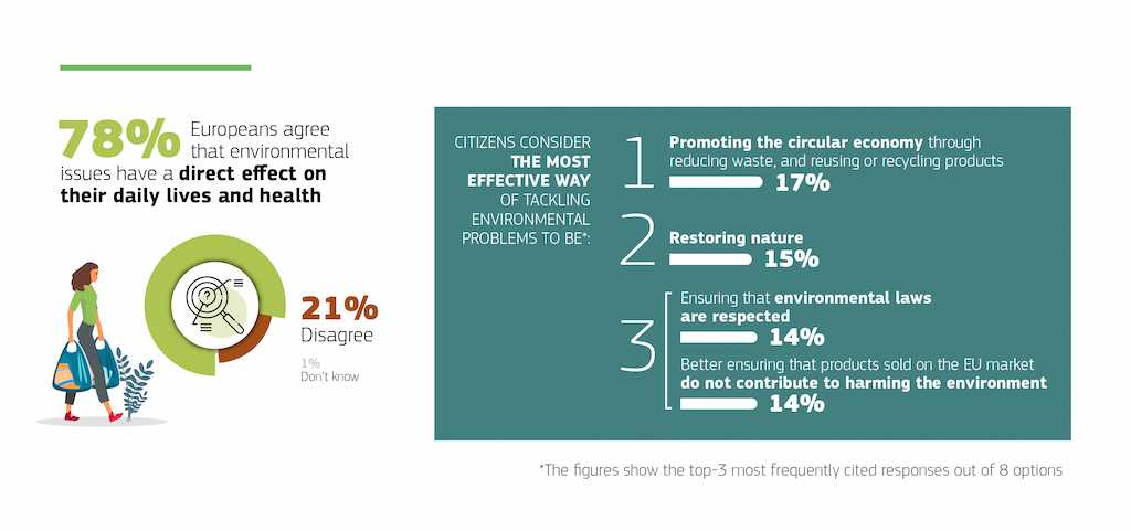 Estos resultados son casi idénticos a los de la última encuesta del Eurobarómetro realizada en 2019, lo que destaca la continua relevancia de la política medioambiental de la UE.