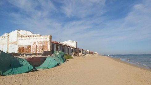 La fila de casas junto a la línea de orilla de playa son el foco de un duro debate, pues la Demarcación de Costas ha ordenado ya su derribo, para regenerar el sistema dunar. Y por el indudable peligro que existe en mareas vivas y movidas. La oposición vecinal y de muchas otras personas defienden su valor histórico, social y cultural, también con el apoyo de muchas otras que se suman en lucha por el derribo.